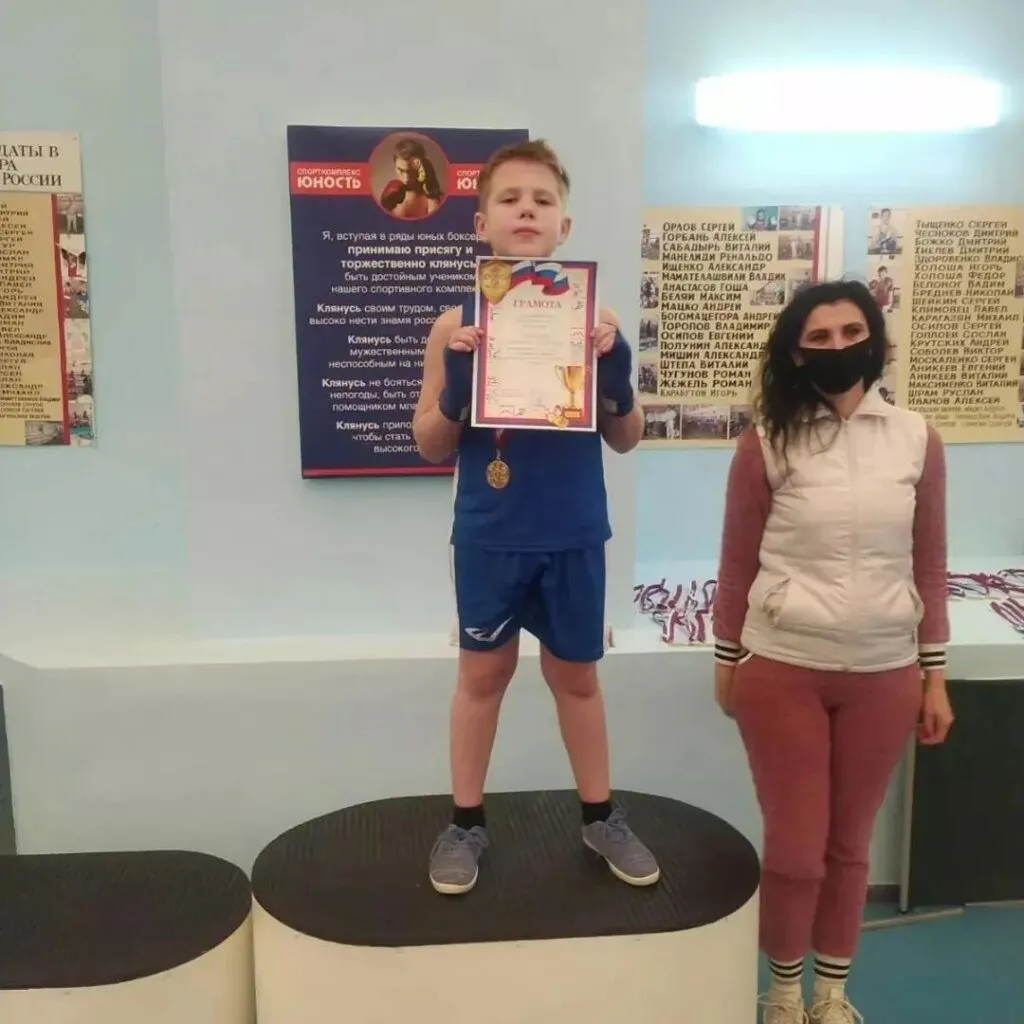 А Матвеев Эдуард 2010г.р. (вес.категория 50кг), одержал победу во 2 раунде техническим накаутом.